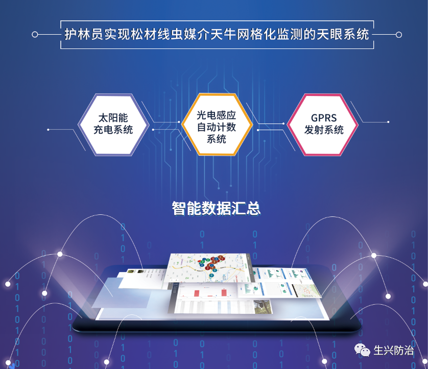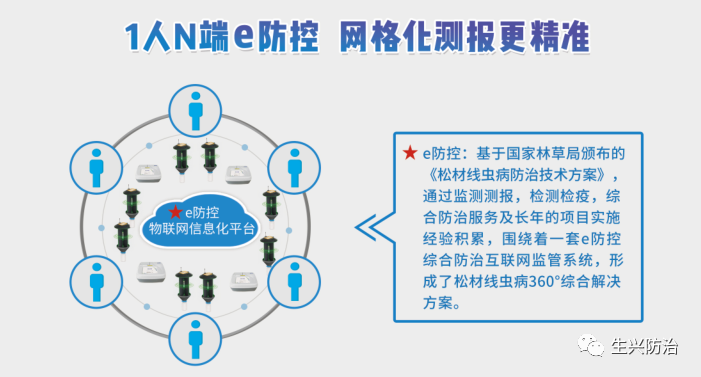 生兴防治智能诱捕器在江苏、安徽、广东、广西、辽宁等地挂设布点推广使用发表时间:2020-06-16 14:41 2018年,国家出台《国家级林业有害生物中心测报点管理规定》以加强和规范国家级林业有害生物中心测报点(以下简称“中心测报点”)建设和管理。同时鼓励社会力量参与林业有害生物监测调查、数据分析、技术服务,支持地方政府向社会化组织购买林业有害生物监测预测服务。加快建立以护林员为主的林业有害生物灾害地面网格化监测网络。 松材线虫是国际上最具危险性及毁灭性的林业有害生物,是我国重大检疫性林业有害生物。由松材线虫寄生在松树体内而引起松树迅速死亡的一种流行性、传染性、毁灭性林木病害——松材线虫病,目前尚无有效药物可治,被称为松树“癌症”。 在松材线虫病防控方面,防重于治,监测是关键,而监测的重点对象,就是能携带松材线虫导致松材线虫病自然传播的媒介天牛。 认识松材线虫媒介天牛光电智能诱捕器 在以往松材线虫媒介天牛监测预报工作中,基层常常遇到人力和技术投入有限、经济代价高、统计资料难、监测不及时不准确等问题,迫切需要更智能化、高效率的手段来破解。 远程监测 全自动计数 在传统诱捕器基础上智能化升级的松材线虫媒介天牛光电智能诱捕器,采用智能光电感应计数系统,以较低的成本实现了对诱捕对象的自动计数并将数据接入互联网,足不出户便可远程实时掌握天牛虫情动态,为基层监测预报及管理带来诸多便利,节约了大量用于调查的人力资源及经济成本。 应用光电智能诱捕器,借助信息素诱集技术、物联网技术、分子检测技术等新型设备和少量地面人工监测队伍,集成到e防控物联网信息化平台,测报人员足不出户便可了解诱捕器分布位置,捕获天牛数量及时间,换引诱剂时间等相关信息,不仅解决人力繁重、监测及时性准确性问题,还能实现“1人n端e防控”网格化监测,提高了基层病害测报能力。